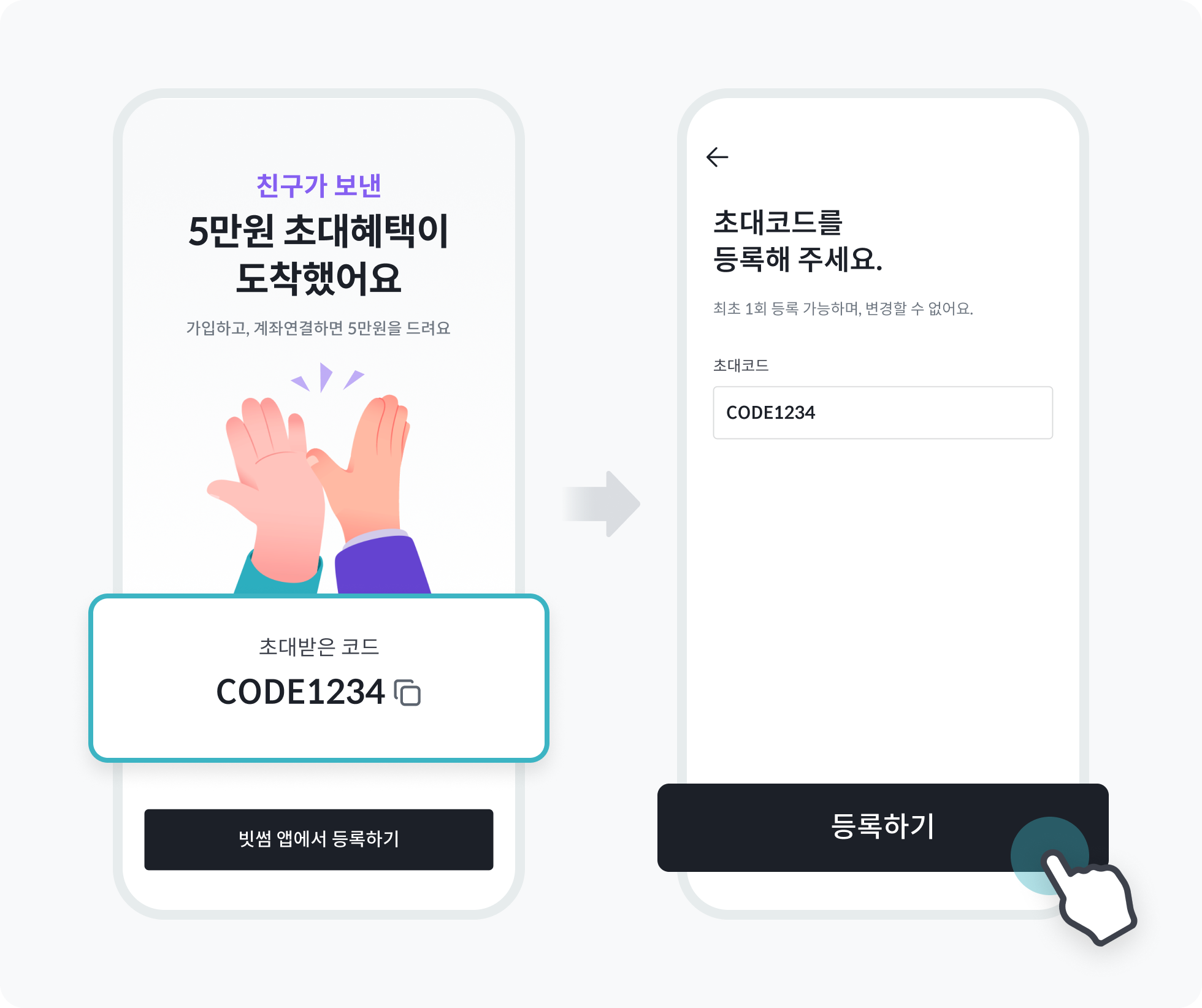 3. 친구는 빗썸 가입 후 초대 코드 등록 & 원화 계좌 연결 시 혜택 즉시 지급